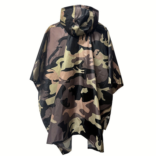 Camo Military Hooded Rain Poncho, Waterproof & Rainproof Foldable Rain Jacket, Army Style Multi-functional Raincoat