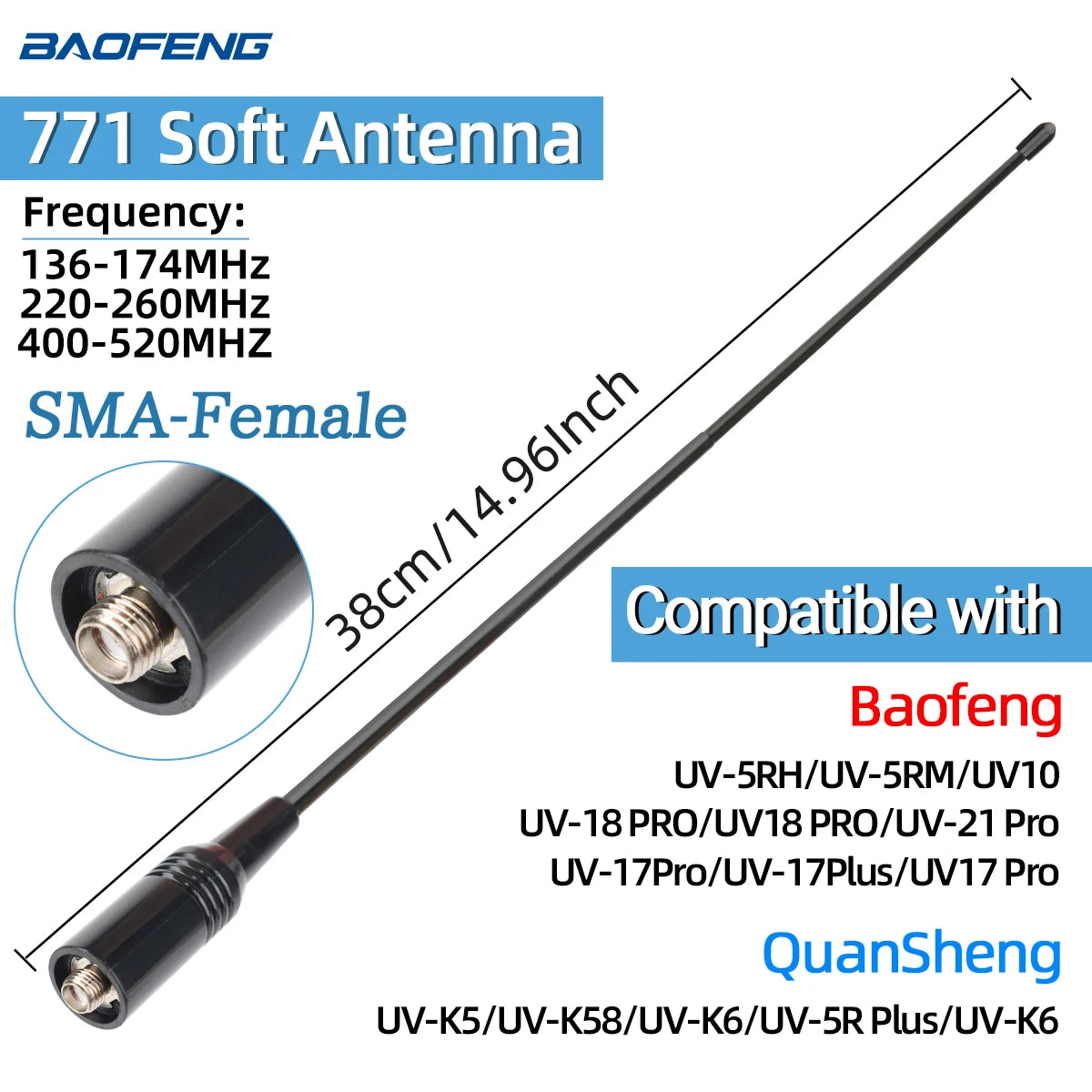 ABBREE Walkie Talkie Antenna SMA Female Male VHF UHF Band Tri-Band GMRS for BaoFeng UV-5R BF-888S Quansheng UV-K5 K6 Ham Radio