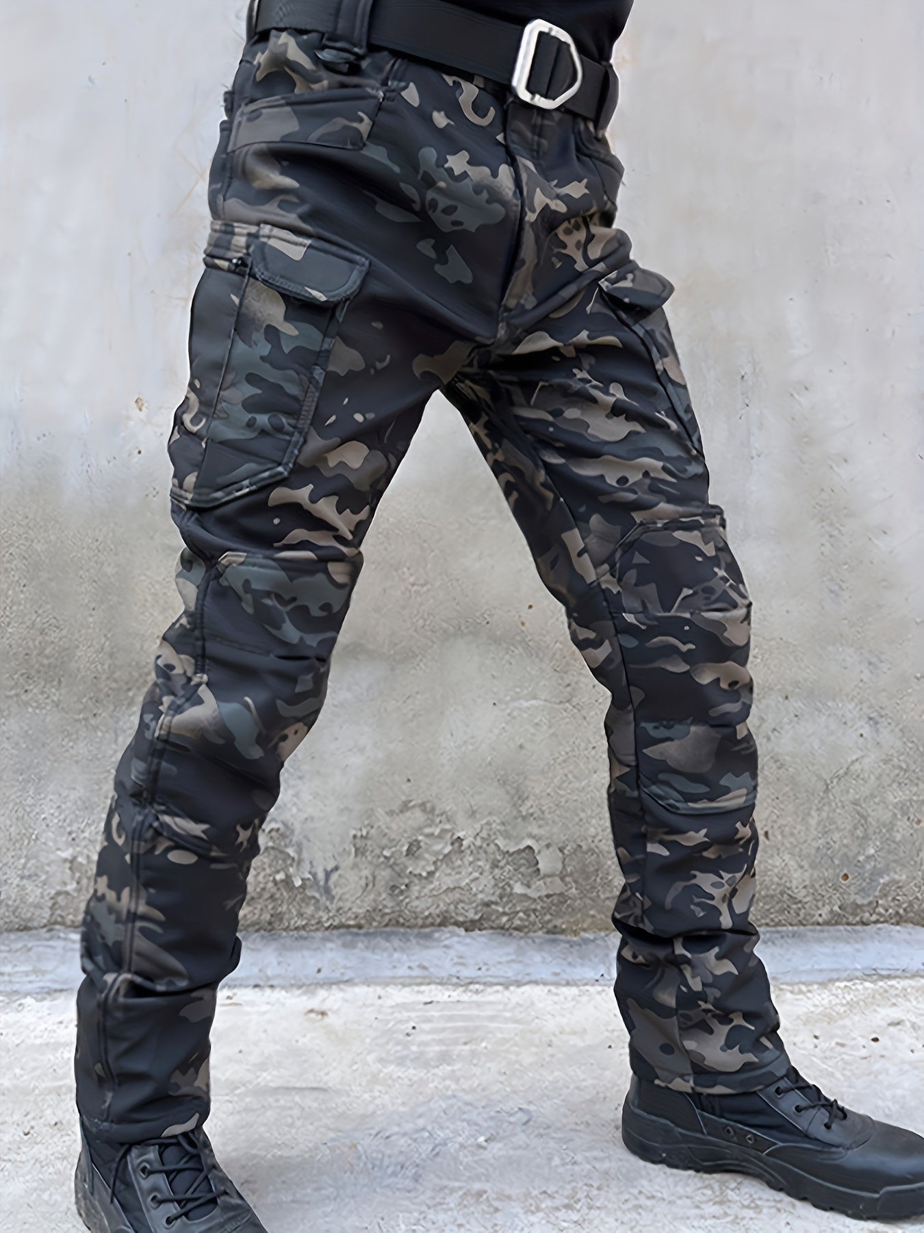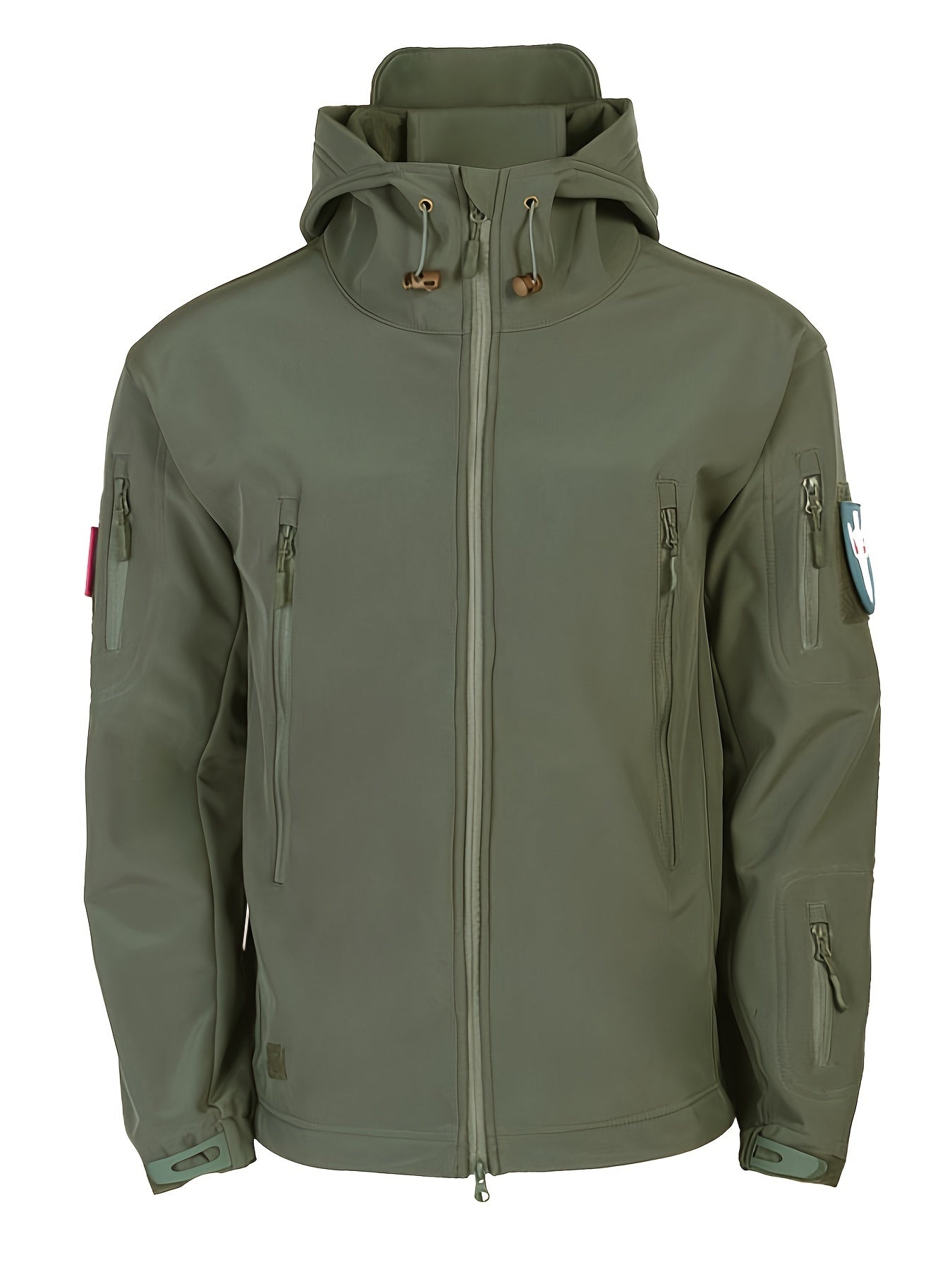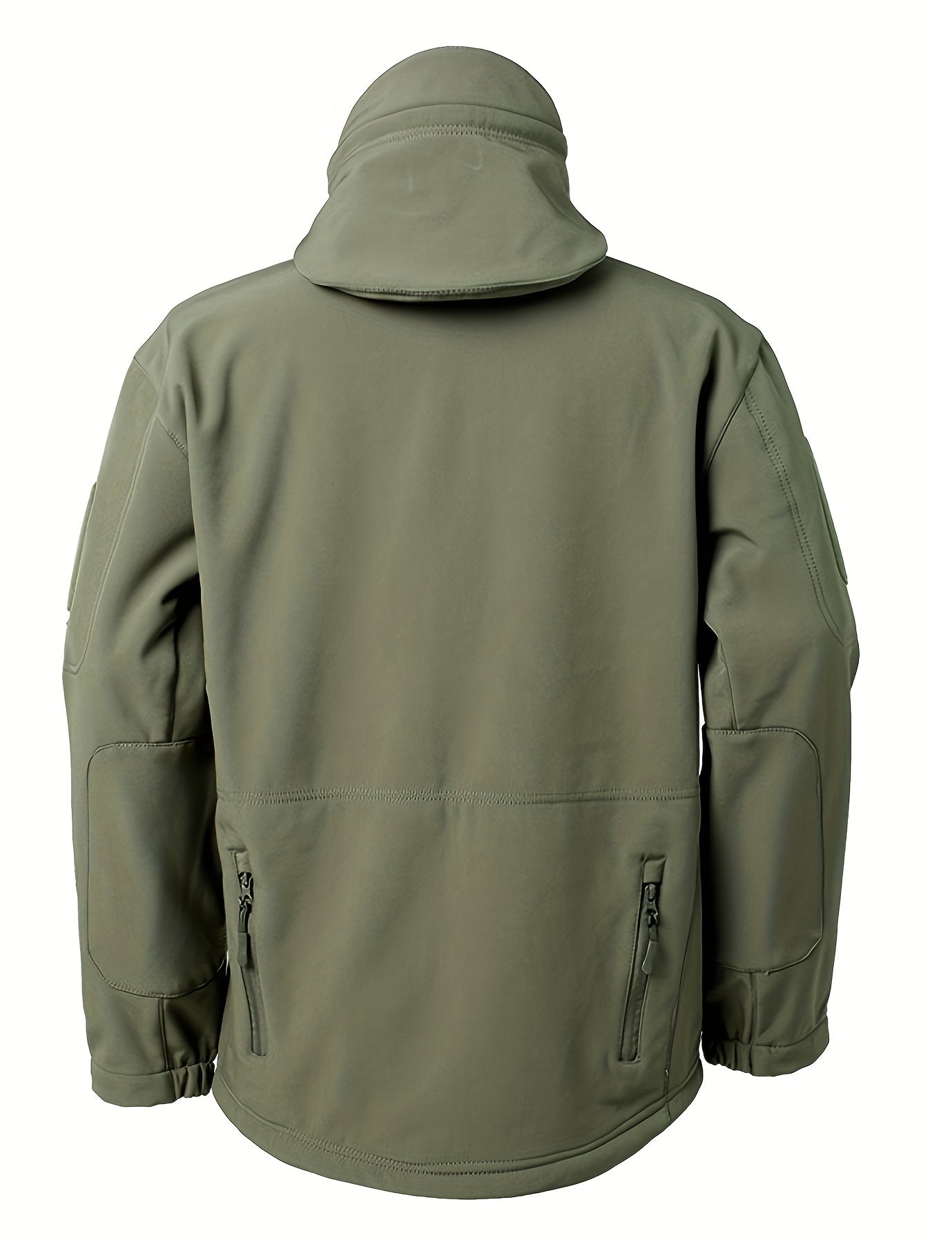 Camouflage Print & Plain Color Men's 2pcs Military Outdoor Windproof Suit Multi-Pocket Soft Shell Hooded Jackets +Sharkskin Work Cargo Pants, Outdoor Cloth