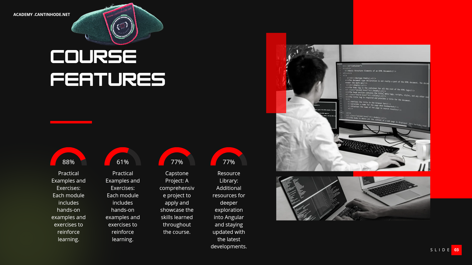 - Real-World Project: Culminates in a capstone project where learners apply their knowledge to build a comprehensive Angular application, touching on project structure, modularization, feature implementation, and deployment.