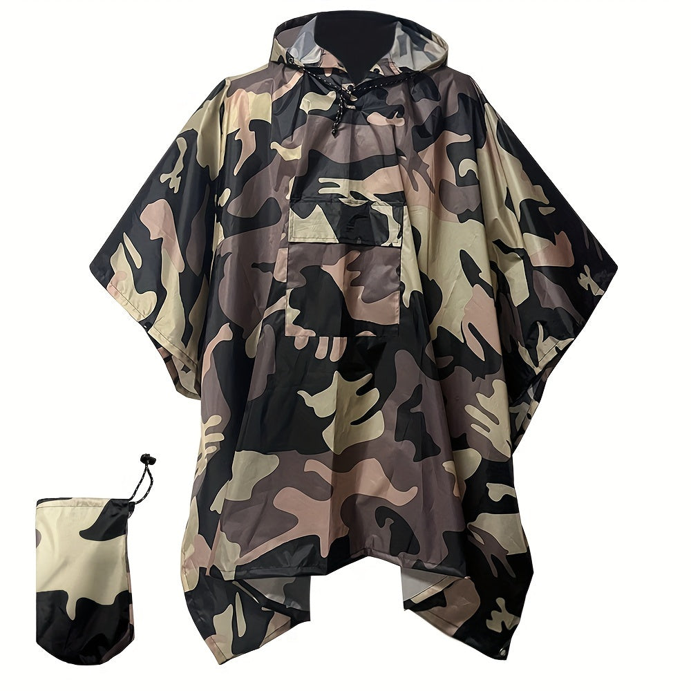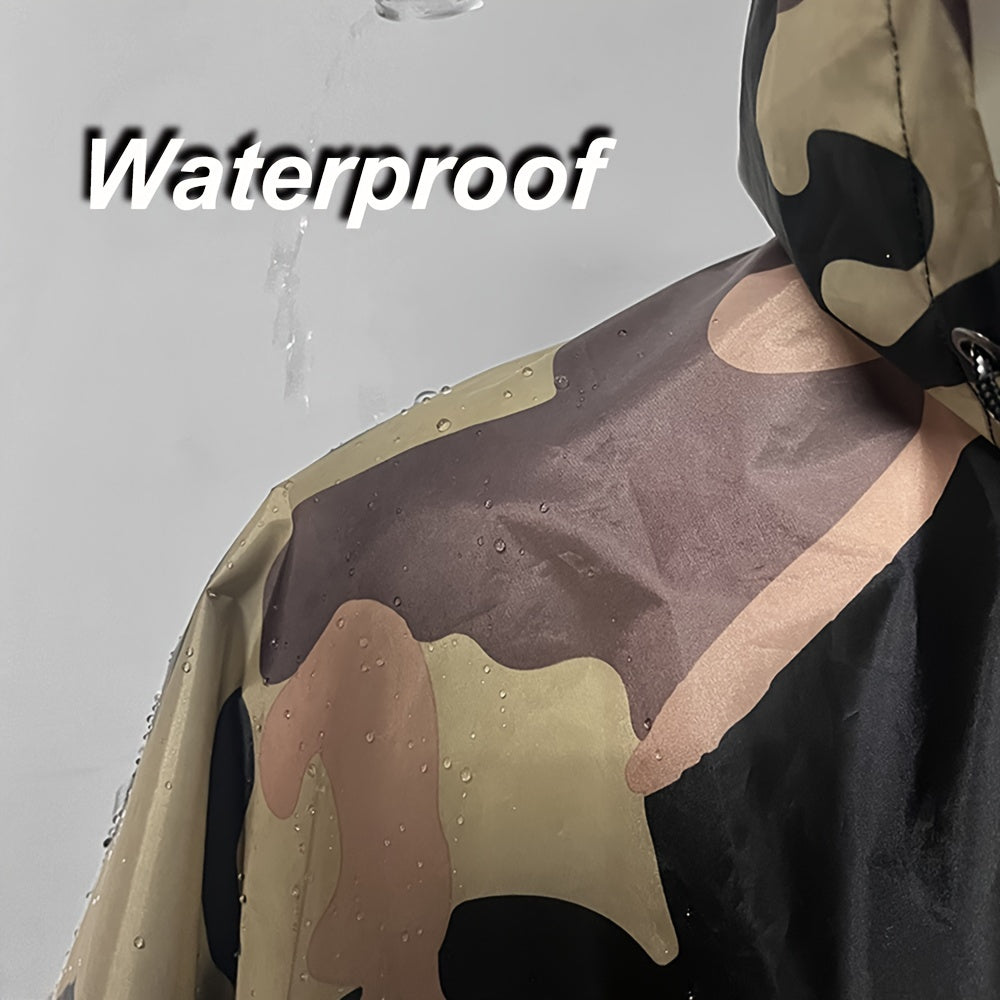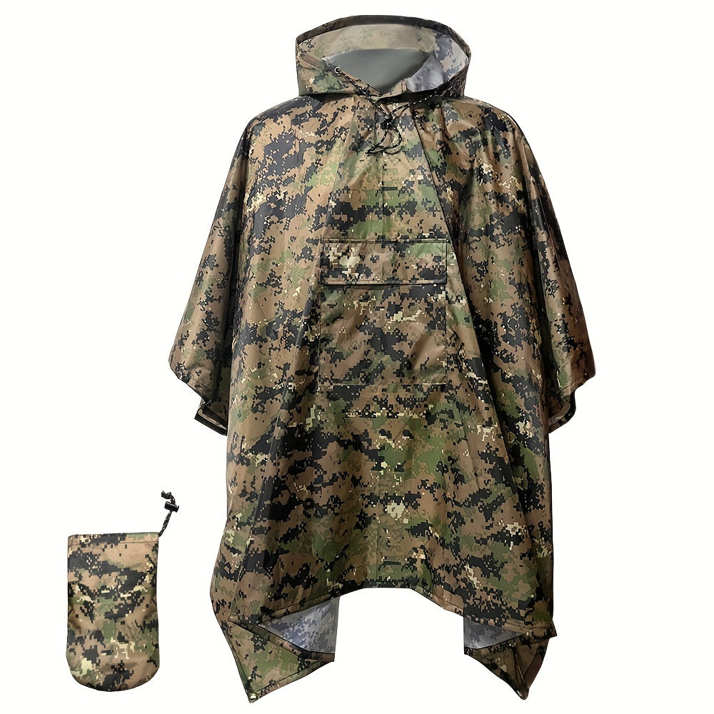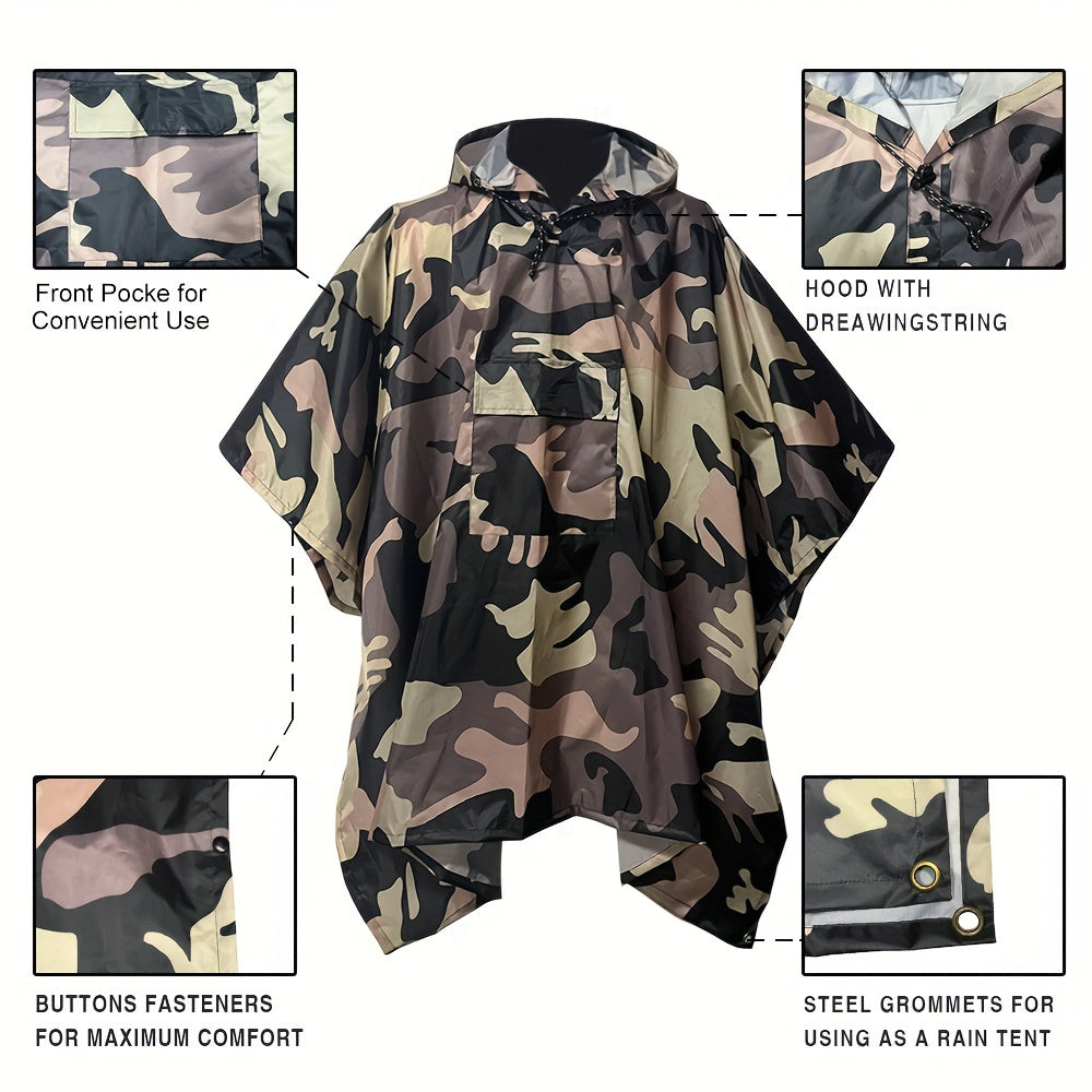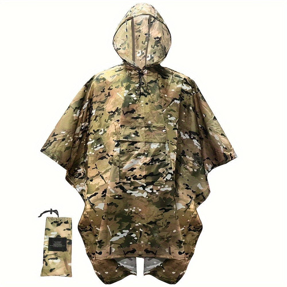 Camo Military Hooded Rain Poncho, Waterproof & Rainproof Foldable Rain Jacket, Army Style Multi-functional Raincoat